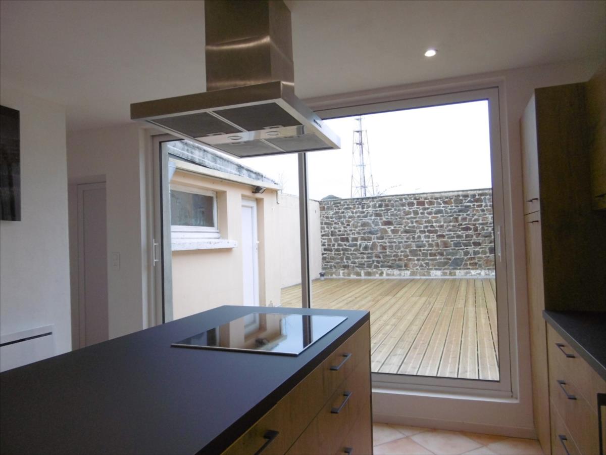 -Au premier étage : Séjour avec cheminée ouverte, cuisine aménagée et équipée avec îlot central (lave vaisselle, plaque induction, four, micro-ondes) avec accès sur très belle terrasse extérieur avec belle exposition