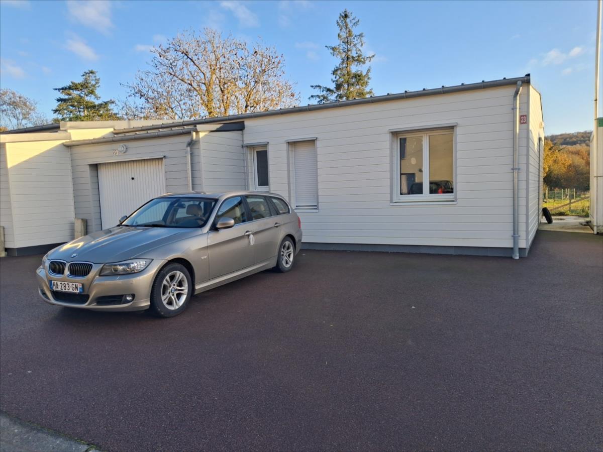 Chalet de plain-pied comprenant cuisine aménagée ouverte sur séjour-salon, deux chambres, un wc et salle d'eau. Garage attenant. Terrasse. Terrain sur l'arrière clos.