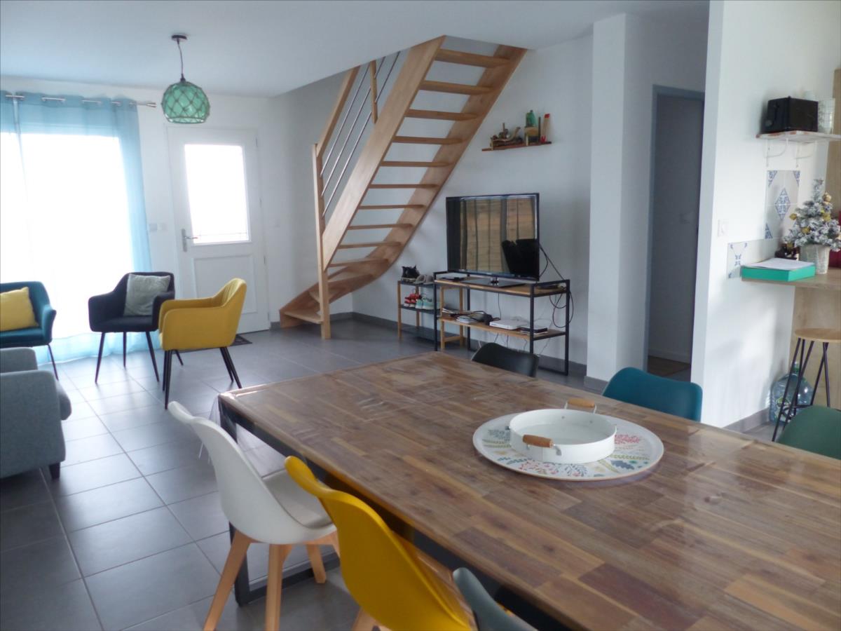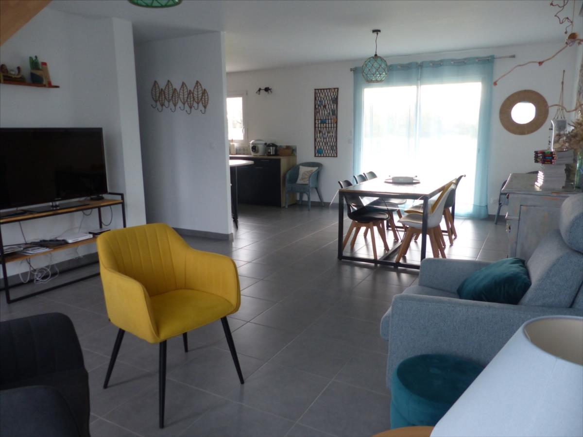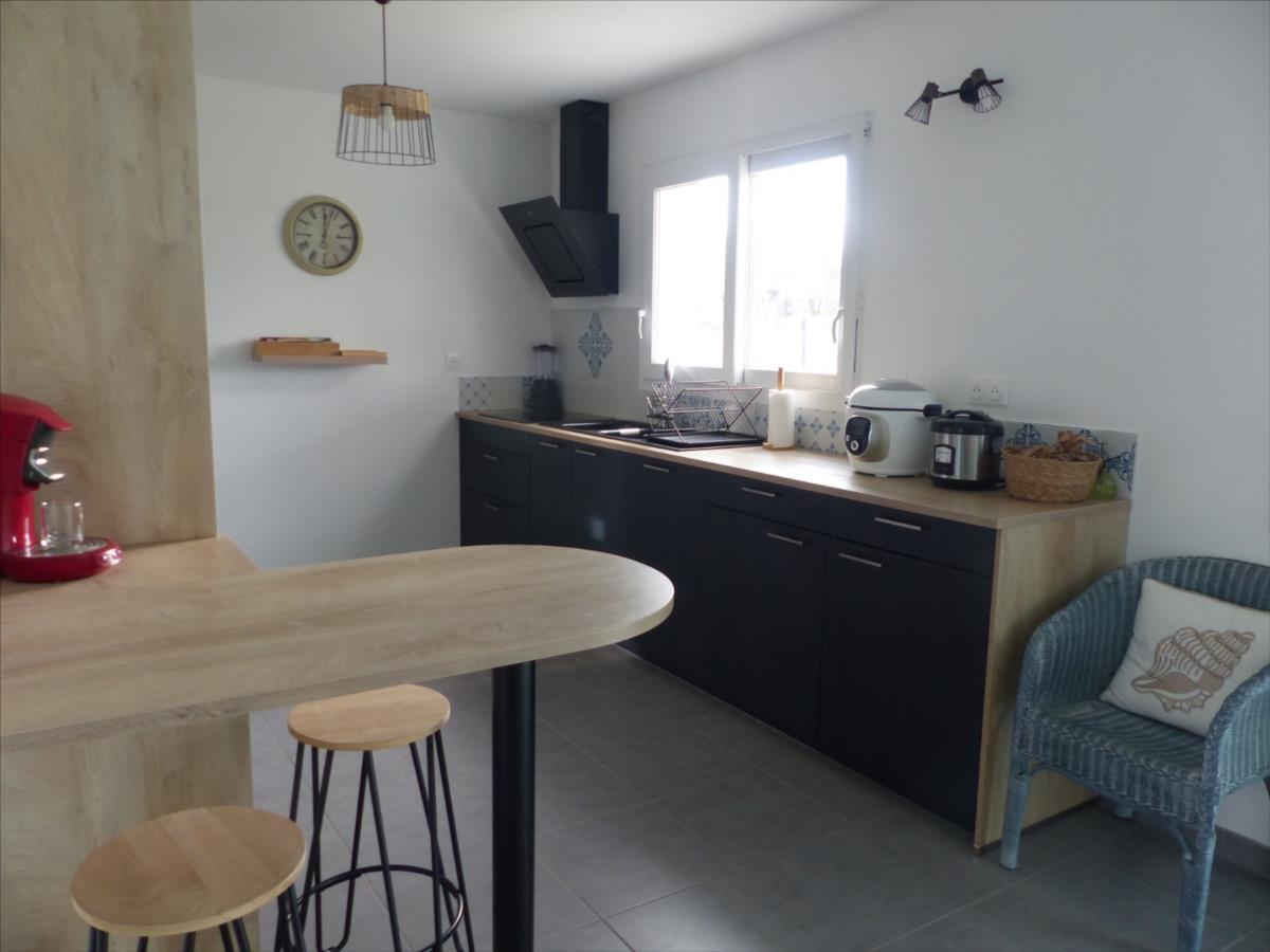 A 2 km de la mer, nous vous présentons ce joli pavillon de 2021, classe énergétique A, couvert en ardoises, qui vous offrira la possibilité d'une vie de plain-pied, comprenant : pièce de vie
