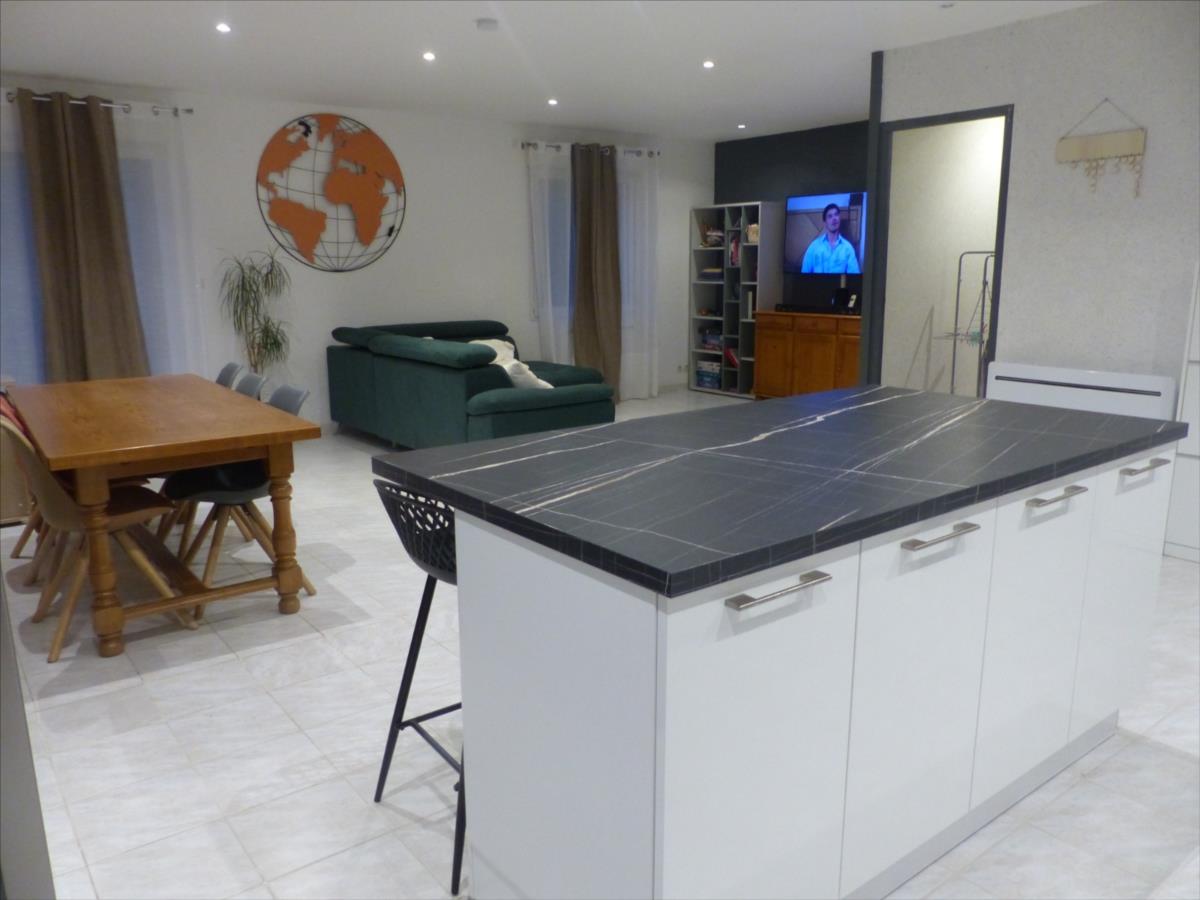 Rez-de-chaussée : entrée ouverte sur salle-salon cuisine aménagée et équipée, salle de bains, 4 chambres, wc.