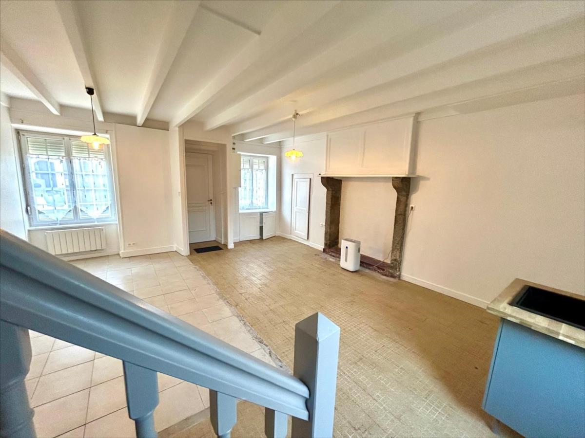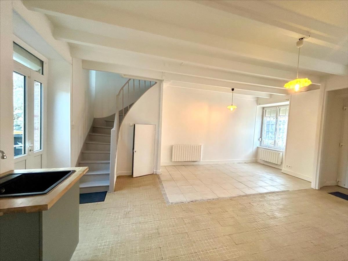 Au rez-de-chaussée: belle et grande pièce à vivre avec coin cuisine ouvert à finir d'aménager. Salle de bains avec WC. Courette (10m²) s'avérant parfaite pour vos repas à l'extérieur.