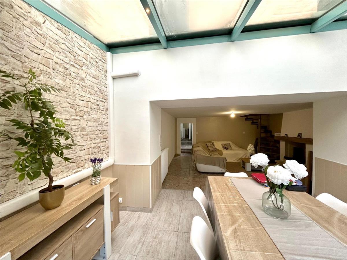 Au-rez-de-chaussée: :  entrée,  véranda  ouvrant sur une cour, pièce à vivre avec cheminée,  cuisine aménagée et équipée (neuve), salle d'eau avec WC, espace buanderie .