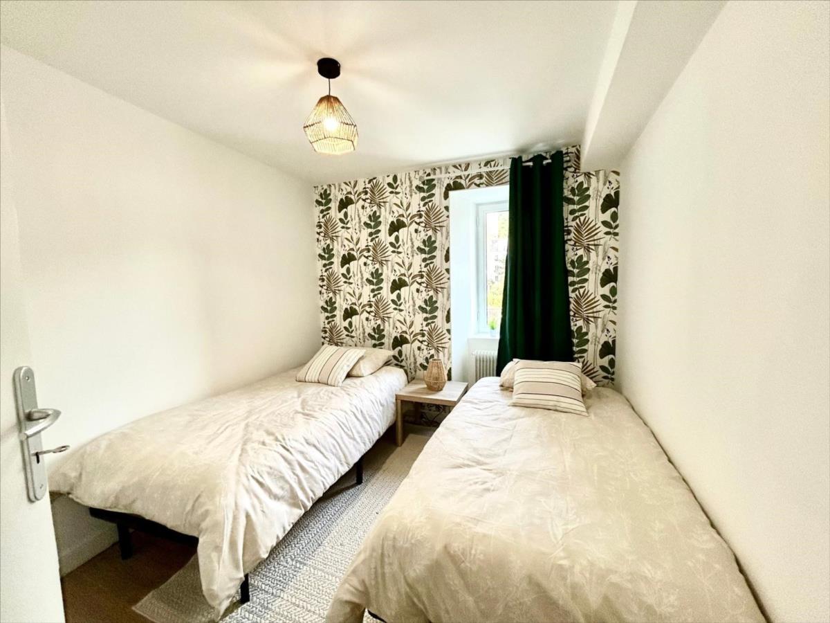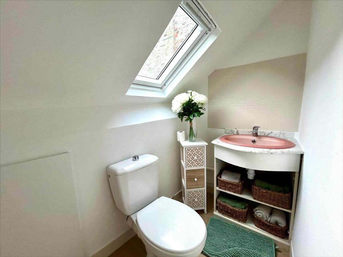 Au premier étage: pièce palière  distribuant  deux  jolies chambres , un  cabinet de toilette avec WC et lavabo. Rangement .