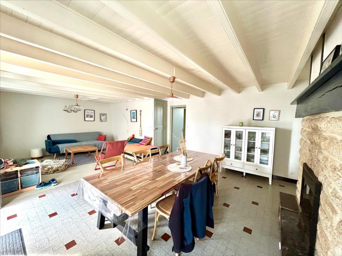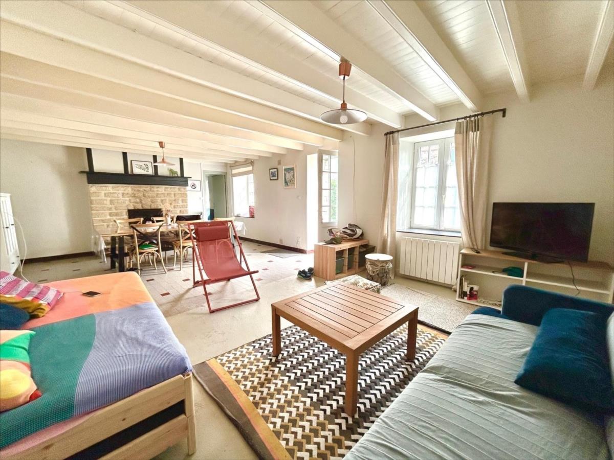 Entrée sur grande et belle pièce à vivre avec cheminée insert ,  cuisine aménagée, deux salles d'eau avec WC, buanderie, une grande chambre ouvrant sur la cour (autonomie de plain-pied).