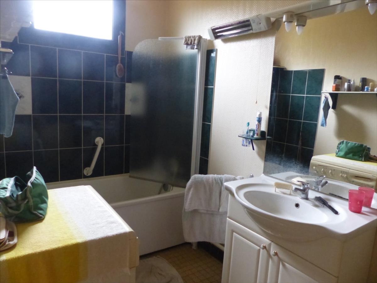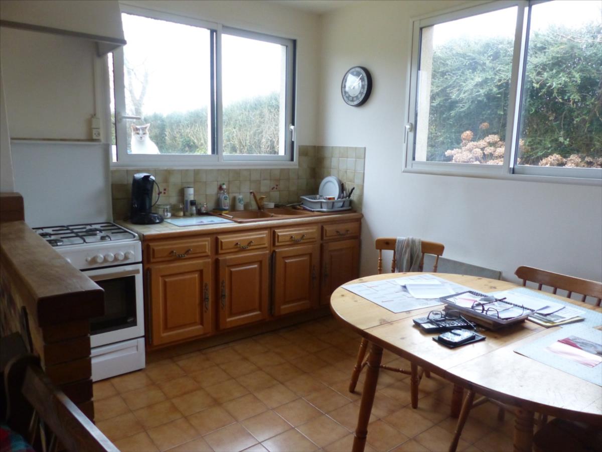 entrée, couloir salle-salon avec cheminée insert et cuisine aménagée, wc, salle