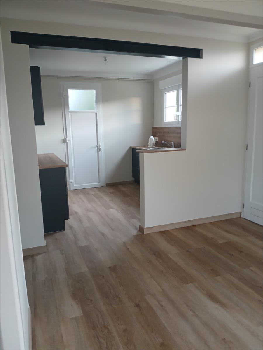 - Au premier niveau: une salle/salon ouverte sur une cuisine aménagée et équipée ( four électrique, hotte aspirante et plaque ), une arrière cuisine et WC.