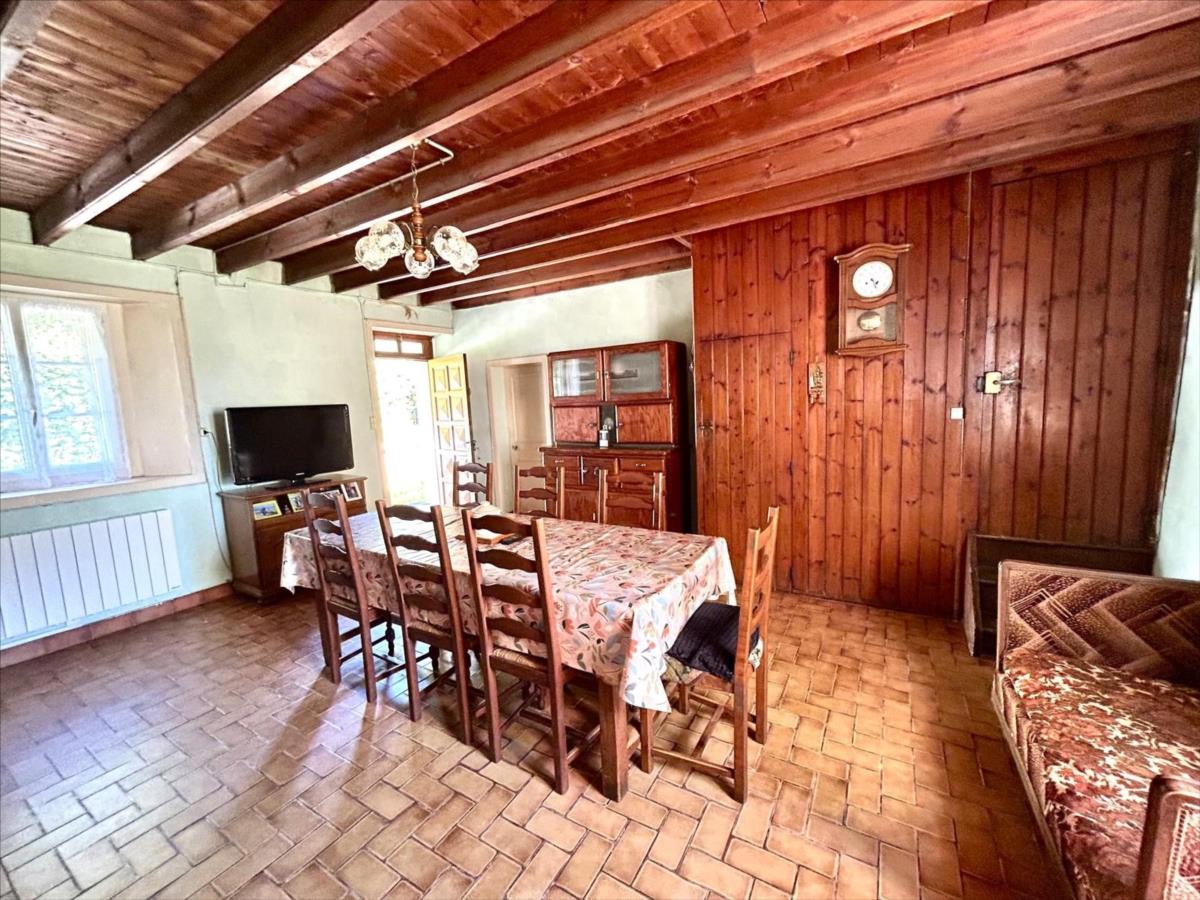 pièce à vivre avec le charme de l'ancien avec sa cheminée et son poêle, cuisine, chambre (autonomie de plain-pied), dégagement desservant salle d'eau, Wc.